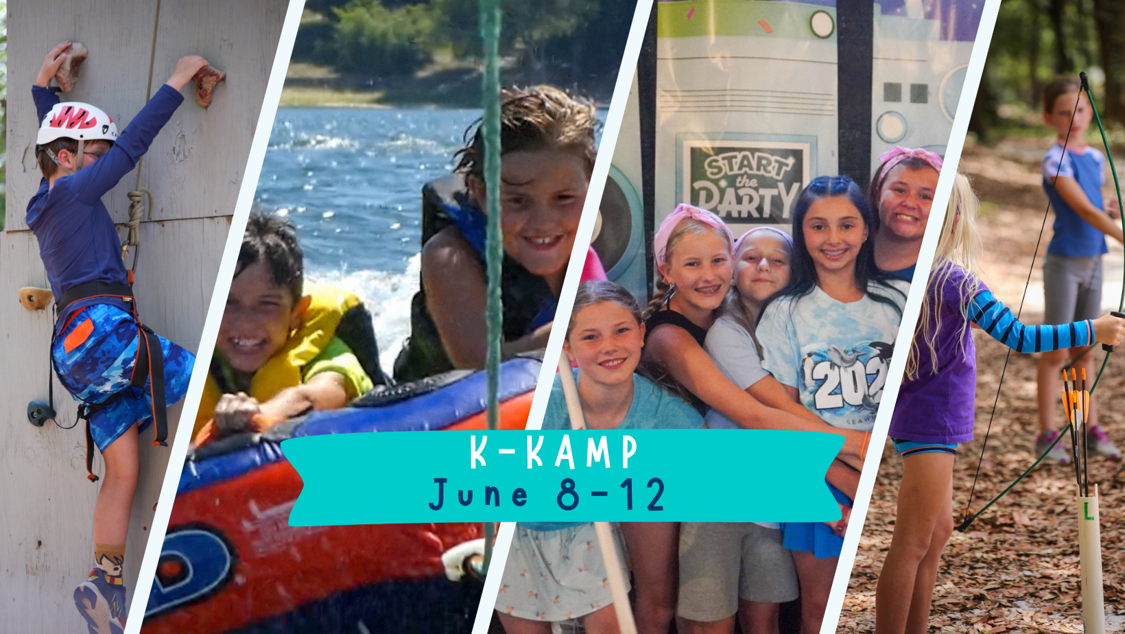 June 8-12, 2025. K-Kamp is a week focused on relationships – growing kids’ relationships with Christ and their fellow campers and leaders. Together we will experience Christian community while participating in activities including worship, Bible study, swimming, tubing, arts and crafts, archery, hiking, and all camp recreation.
