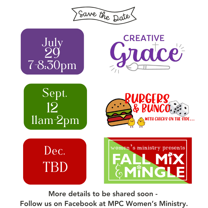 The women's ministry of MPC consists of various classes, groups and get-togethers for fellowship, discipleship and social events. We hope you'll check out some of our upcoming opportunities here at MPC! If you want additional information or have any questions, reach out to womensministry@mandarinpres.com.
