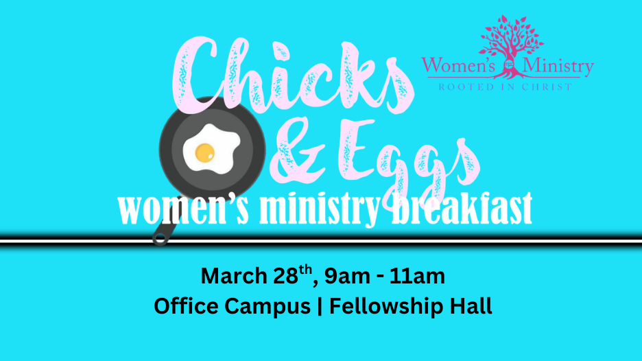 Join us for Chicks and Eggs on Saturday, March 28th! Enjoy a morning of breakfast and fellowship with the ladies of our community. The event is $10, and childcare will be provided with prior registration by March 23rd. Click here to register. We look forward to seeing you!